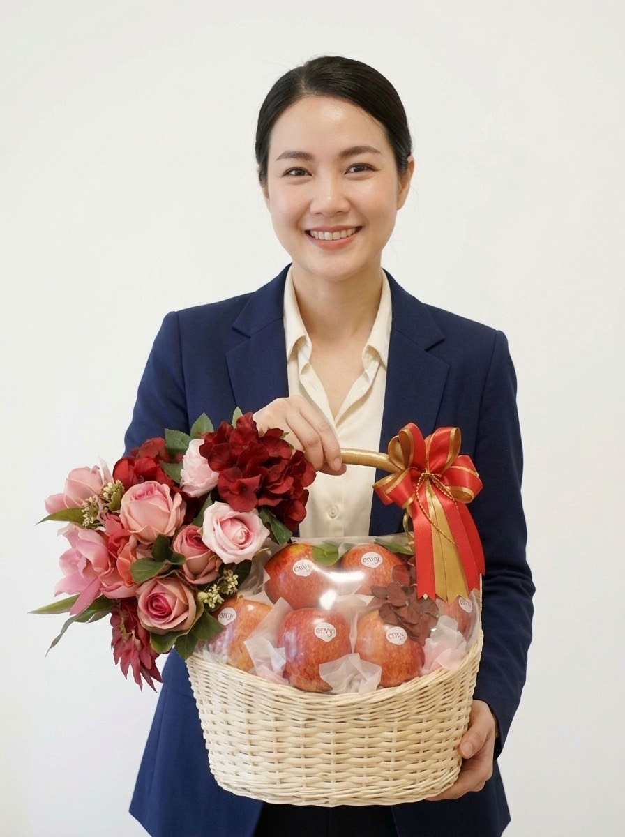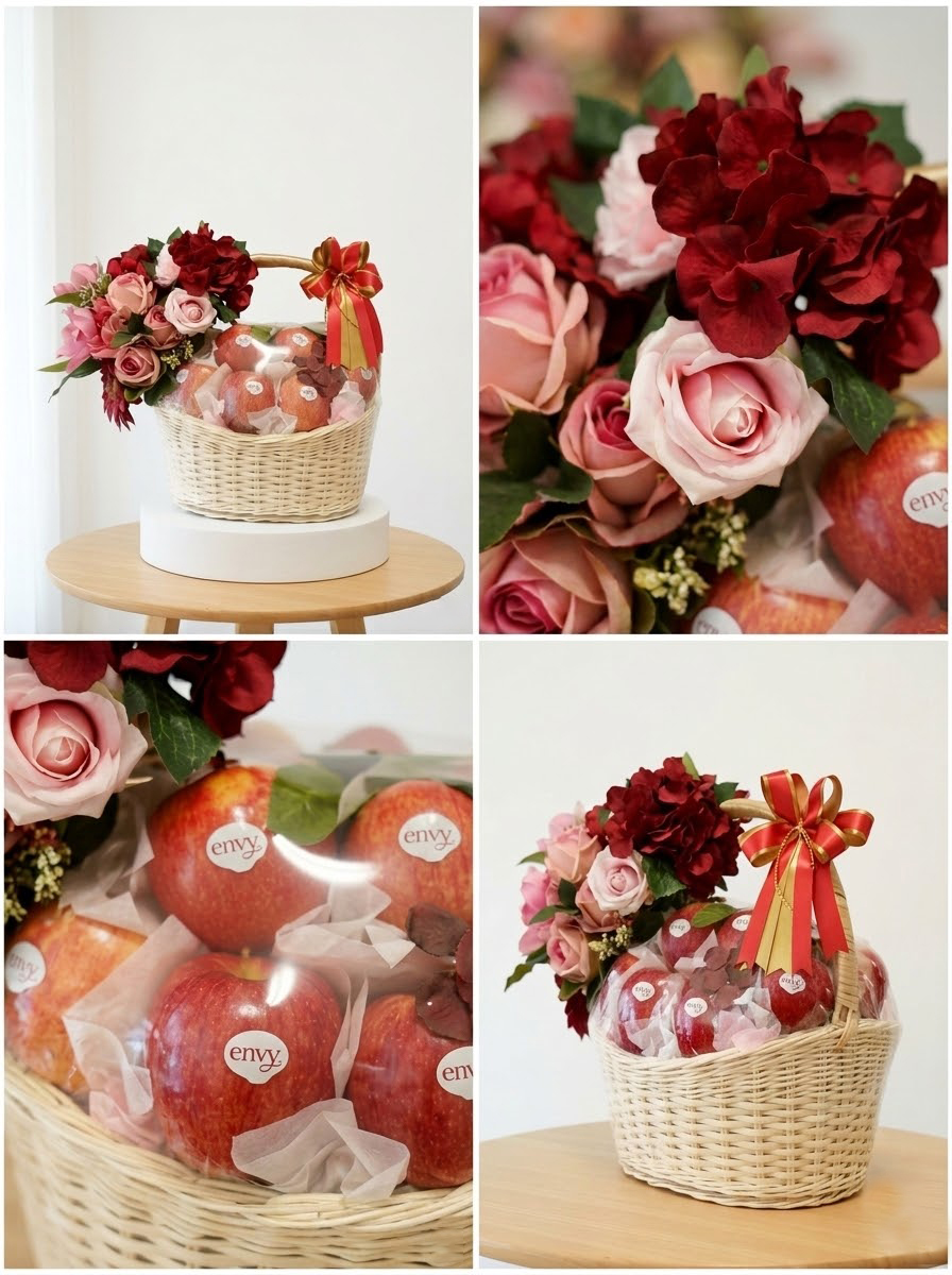 F&F-03 กระเช้าหวายแอปเปิ้ล