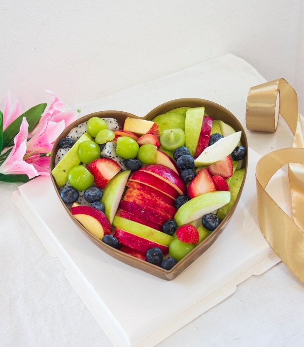 ของขวัญสุขภาพในกล่องหัวใจ ขนาดพอดีมือ รวมผลไม้ปลอกพร้อมทาน